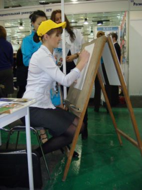 Наша экспозиция была представлена новыми рекламными стендами, видеороликами с учебными фильмами и презентациями научных архитектурных разработок студентов, макетами зданий, рекламными материалами с общеобразовательной информацией для абитуриентов. В этом году в работе стенда приняли активное участие студенты. Ребята приглашали посетителей выставки к нашему стенду, раздавали рекламные буклеты. Одним из самых привлекательных моментов в работе стенда Сибстрина был пленер, организованный Молодежной творческой мастерской. Ребята рисовали портреты участников выставки, посетителей, отражали в своих рисунках работу соседних стендов, запечатляли яркие моменты выставки