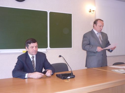 На собрании выступили ректор университета С.В.Линовский и проректор по научной работе Ю.Л.Сколубович