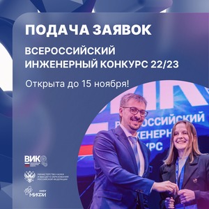1 октября 2022 года стартовал VIII Всероссийский инженерный конкурс студентов и аспирантов. Конкурс организуется Министерством науки и высшего образования Российской Федерации с 2014 года в соответствии с поручением Президента России с целью привлечения молодежи к решению перспективных производственных, технических, экономических задач, имеющих стратегическое значение для развития промышленности страны.
