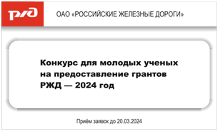 КОНКУРС ДЛЯ МОЛОДЫХ УЧЕНЫХ НА ПРЕДОСТАВЛЕНИЕ ГРАНТОВ РЖД — 2024 ГОД