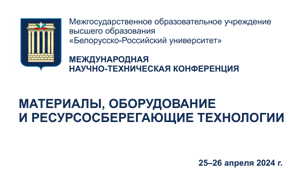 Белорусско-Российский университет приглашает принять участие в Международной научно-технической конференции «Материалы, оборудование и ресурсосберегающие технологии», которая состоится 25–26 апреля 2024 г.
