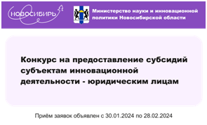 Открыт прием заявок на конкурс на предоставление субсидий субъектам инновационной деятельности - юридическим лицам.